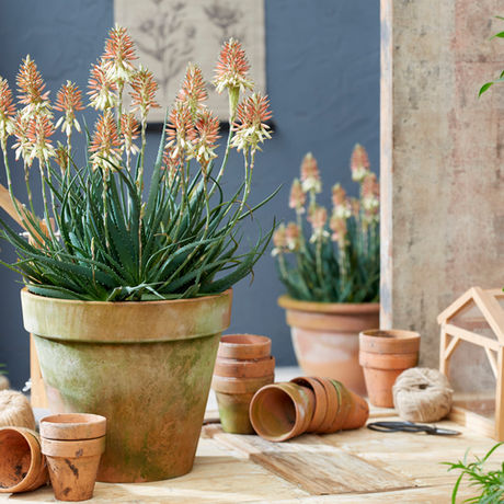 Aloe Porcupine is a dwarf variety that produces a multitude of short and compact fleshy leaves. Bicoloured flowers appear in winter and shift from red to cream down the flower spike. Suitable for use in gardens and pots.