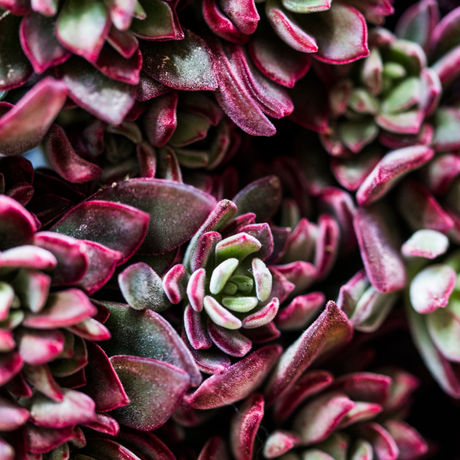 Echeveria Devotion produces a mass of rossettes with velvety soft, burgundy and green leaves. Devotion has a compact branching habit and is perfect for pots and rockeries.