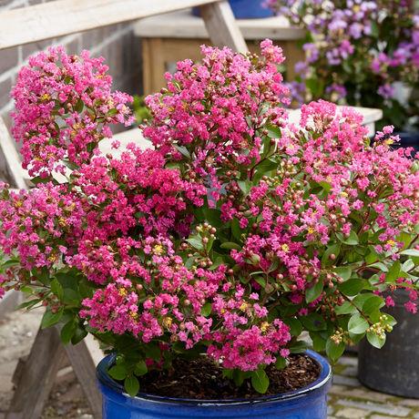 Lagerstroemia With Love® Kiss is a uniquely compact, highly florifiorous variety with hot pink flowers that appear from mid Summer to late Autumn.